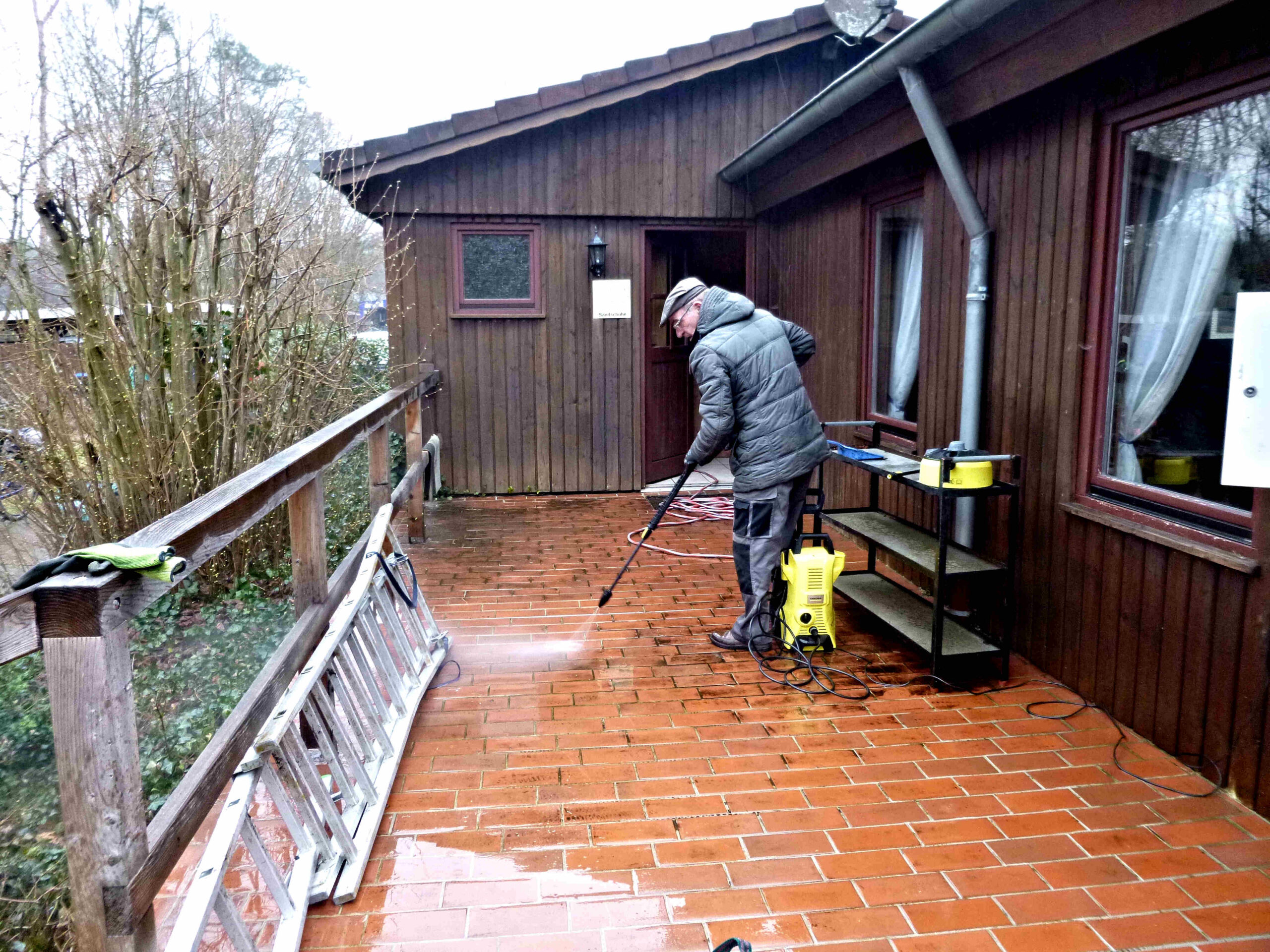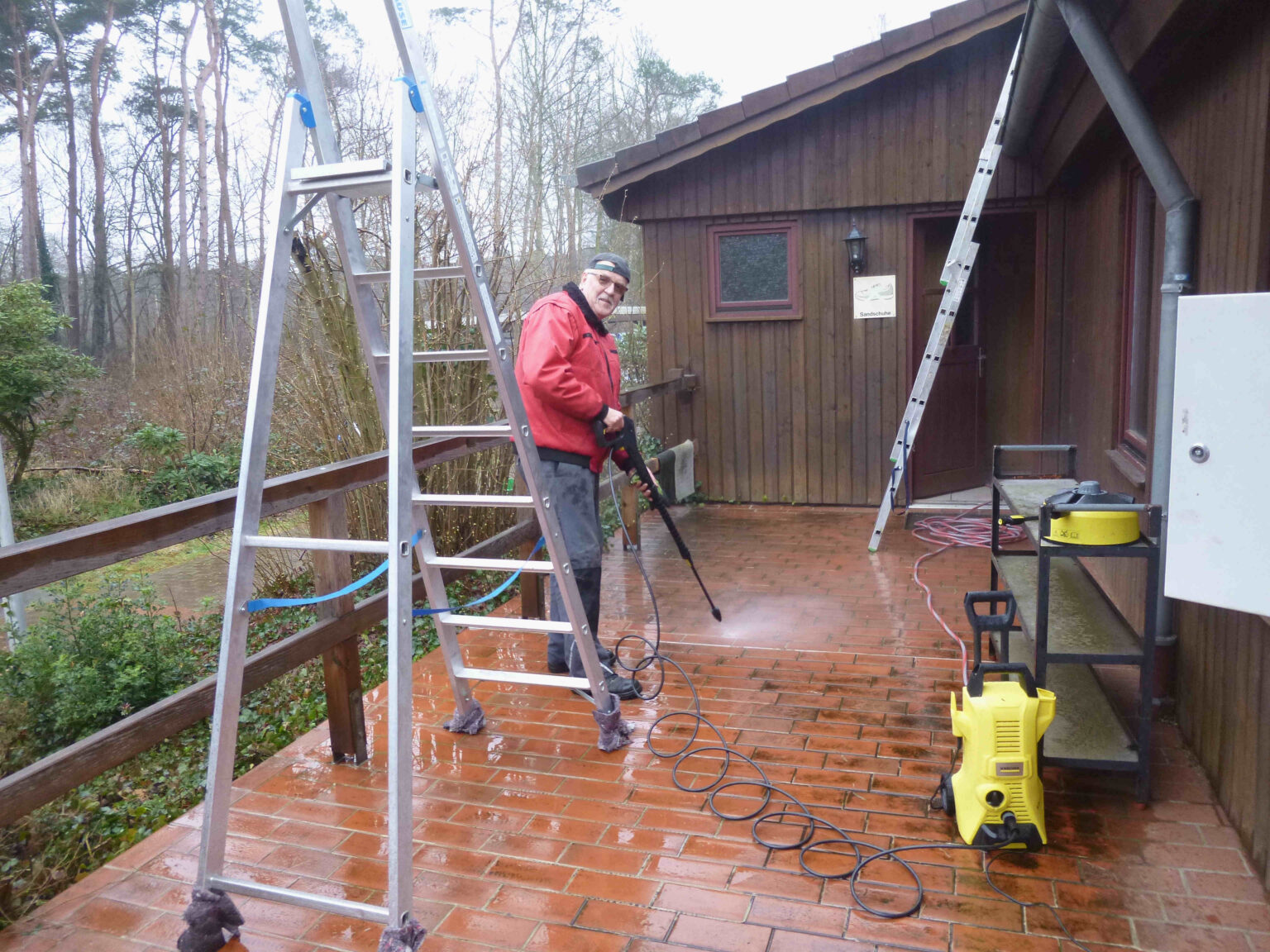 Wir trafen uns um 9.00 Uhr und dann ging es gemeinsam los. Leider war der Regen dabei, was unseren Eifer aber nicht minderte. Der Efeu und das Unkraut rund um das Vereinshaus und den Bouleplatz nahmen Überhand und mussten entfernt werden. Sträucher wurden zurückgeschnitten. Auch der Hochdruckreiniger kam für die Fließen zum Einsatz. Gegen 12 Uhr war dann „Feierabend“ und Zeit für eine Bratwurst mit Bier. Alle sagten zum Schluss: Es hat sich gelohnt