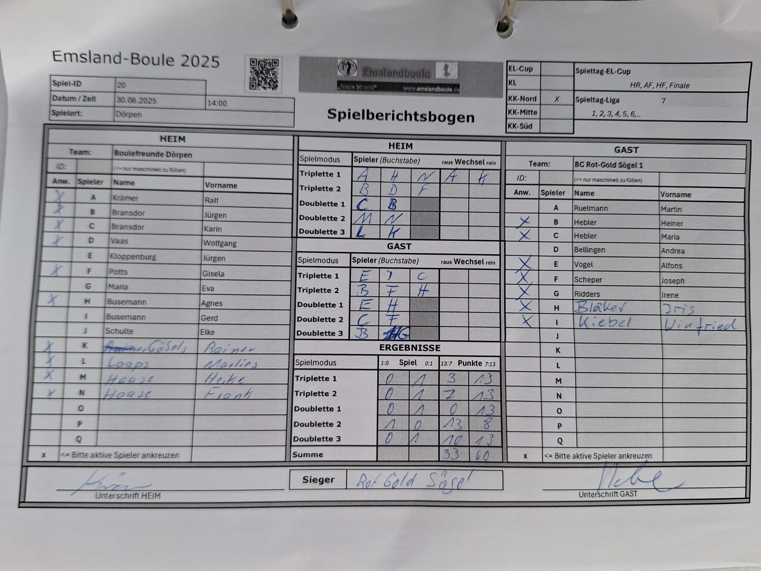 Am 30. August hatten wir unser letztes Punktspiel dieser Saison