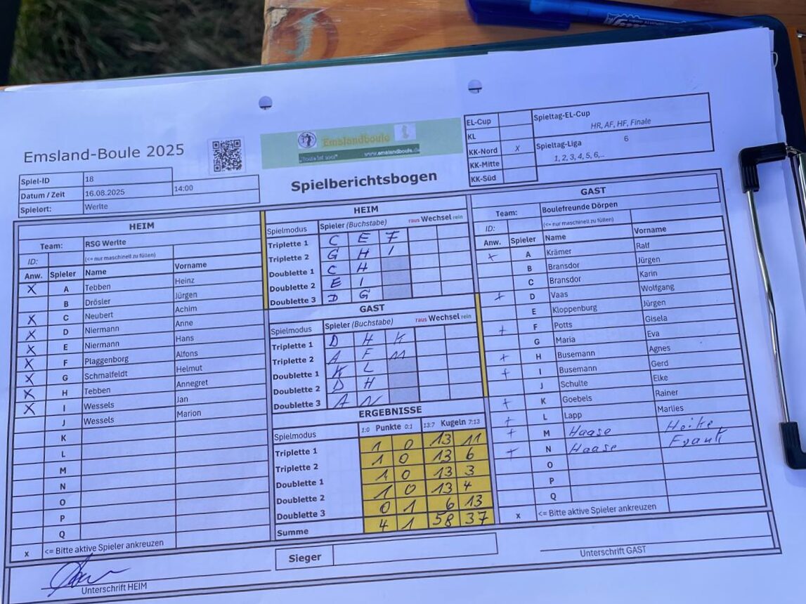 Am 26. April hatten wir auf eigenem Platz unser erstes Boulespiel in der Kreisliga. Unser Gegner war SV-Esterwegen. Bei idealem Boulewetter erwartete uns ein interessantes Spiel.